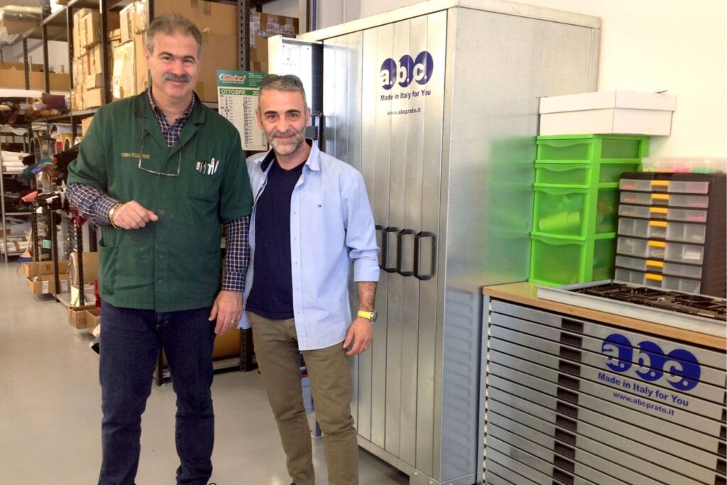 La collaborazione con Corrado ed Emilio nasce nel 2006, quando a seguito di incontri in azienda e in fiera, decidono di inserire in azienda cassettiere orizzontali e verticali per il laboratorio, migliorando l’ordine delle fustelle, tempi e metodi.