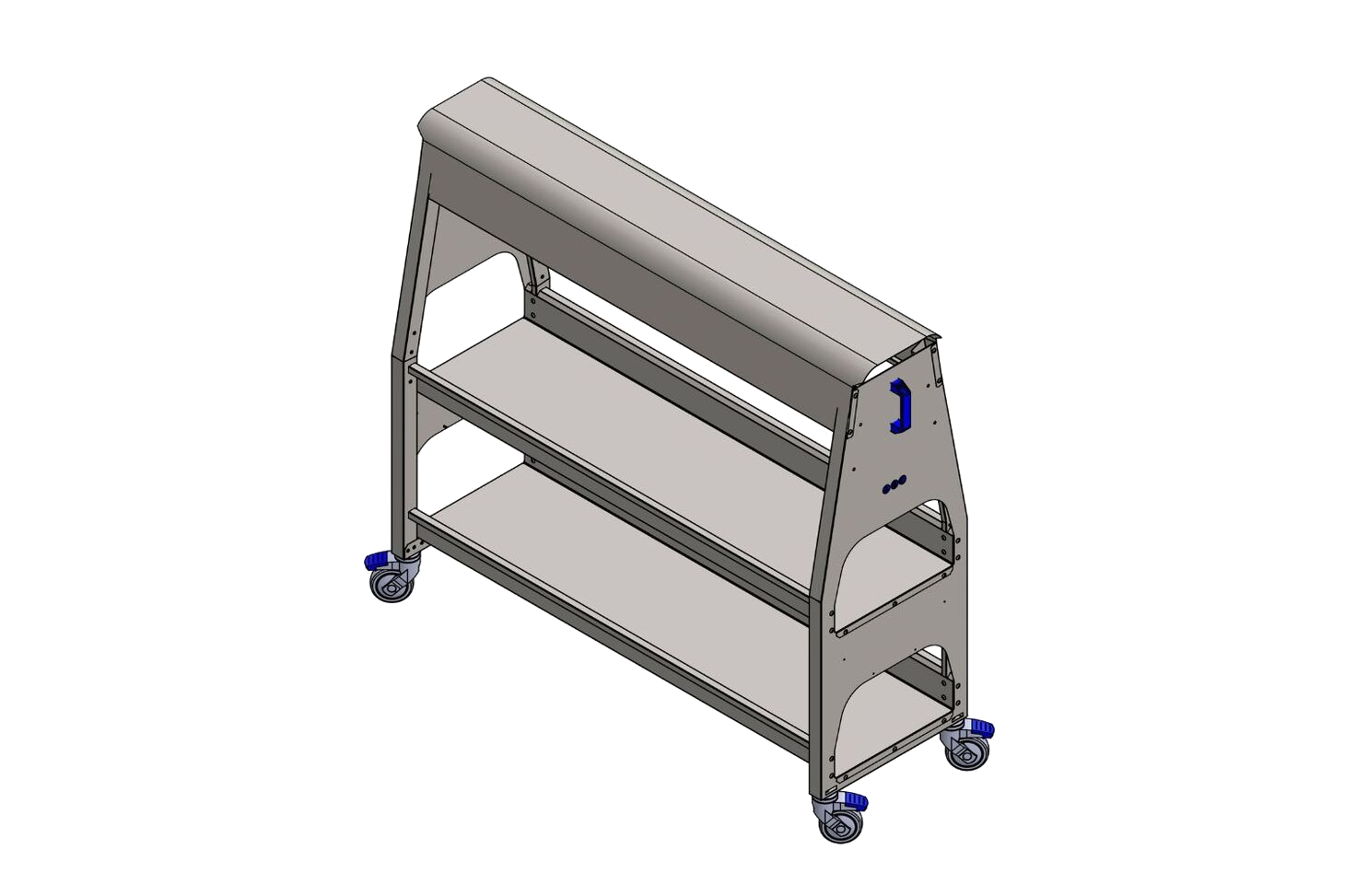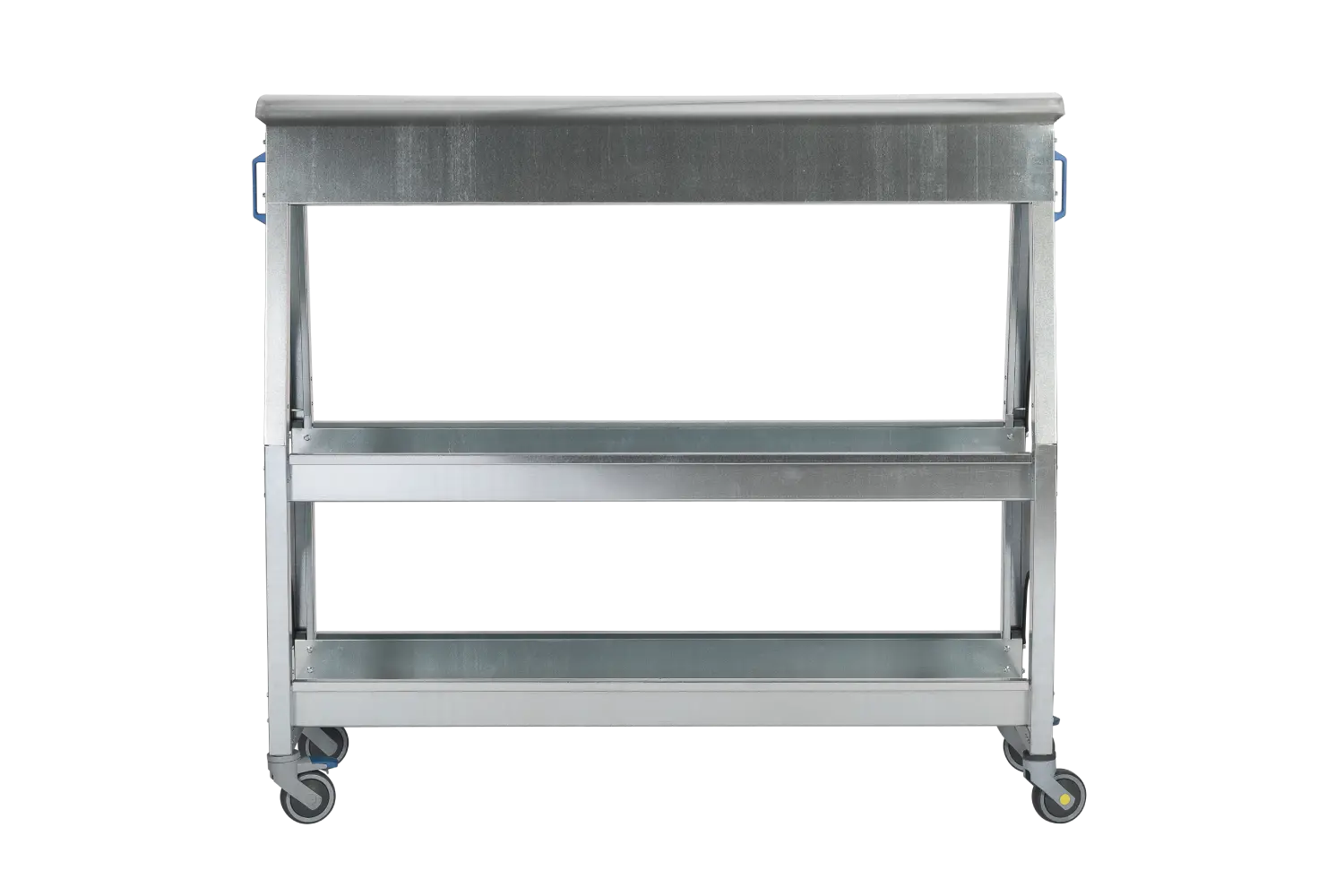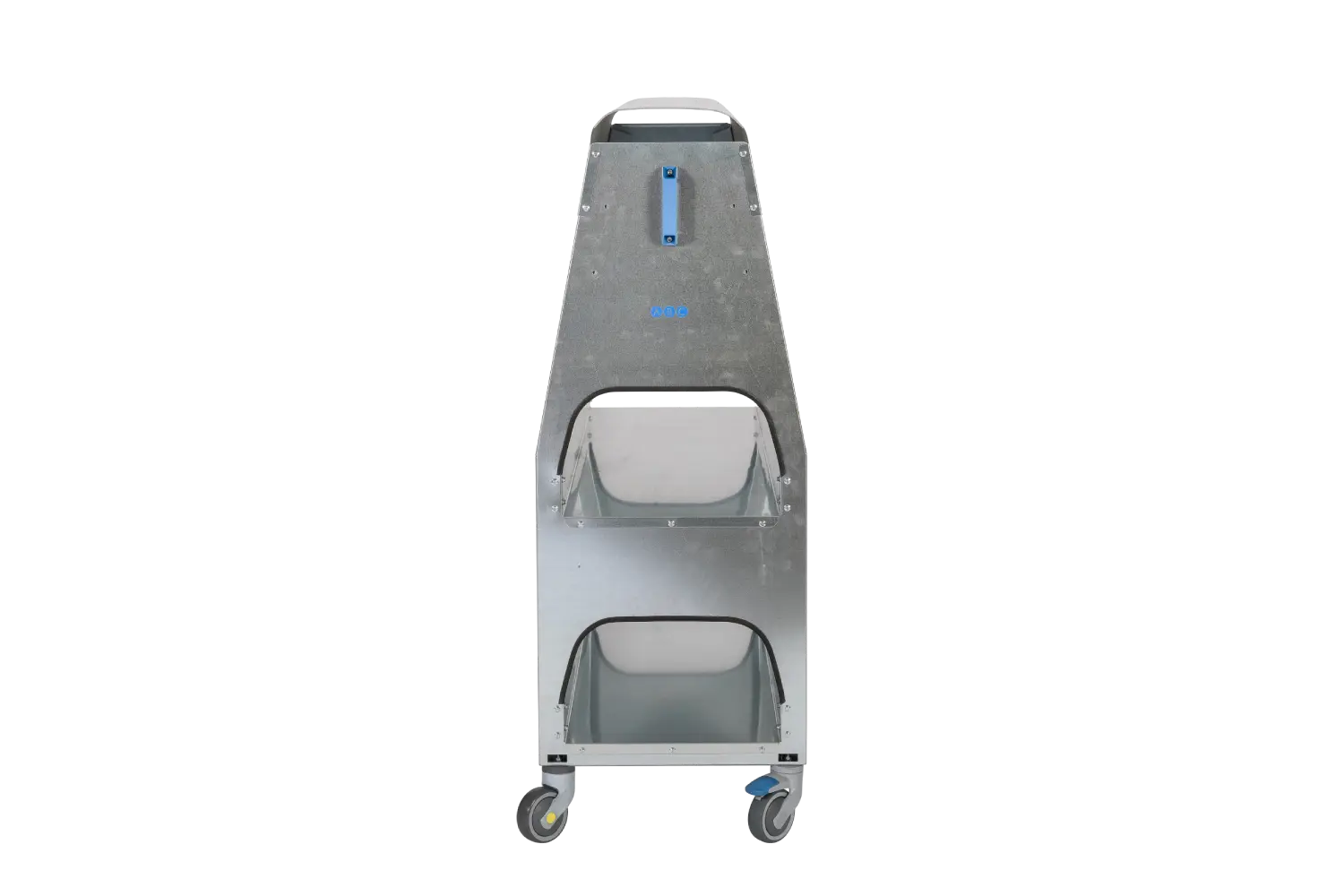 The standard leather horse cart with wide hump is chosen by shoe and leather goods manufacturers to handle leather from one department to another. The wide hump is ideal for all leather types, even the most delicate, as it has a larger surface area.