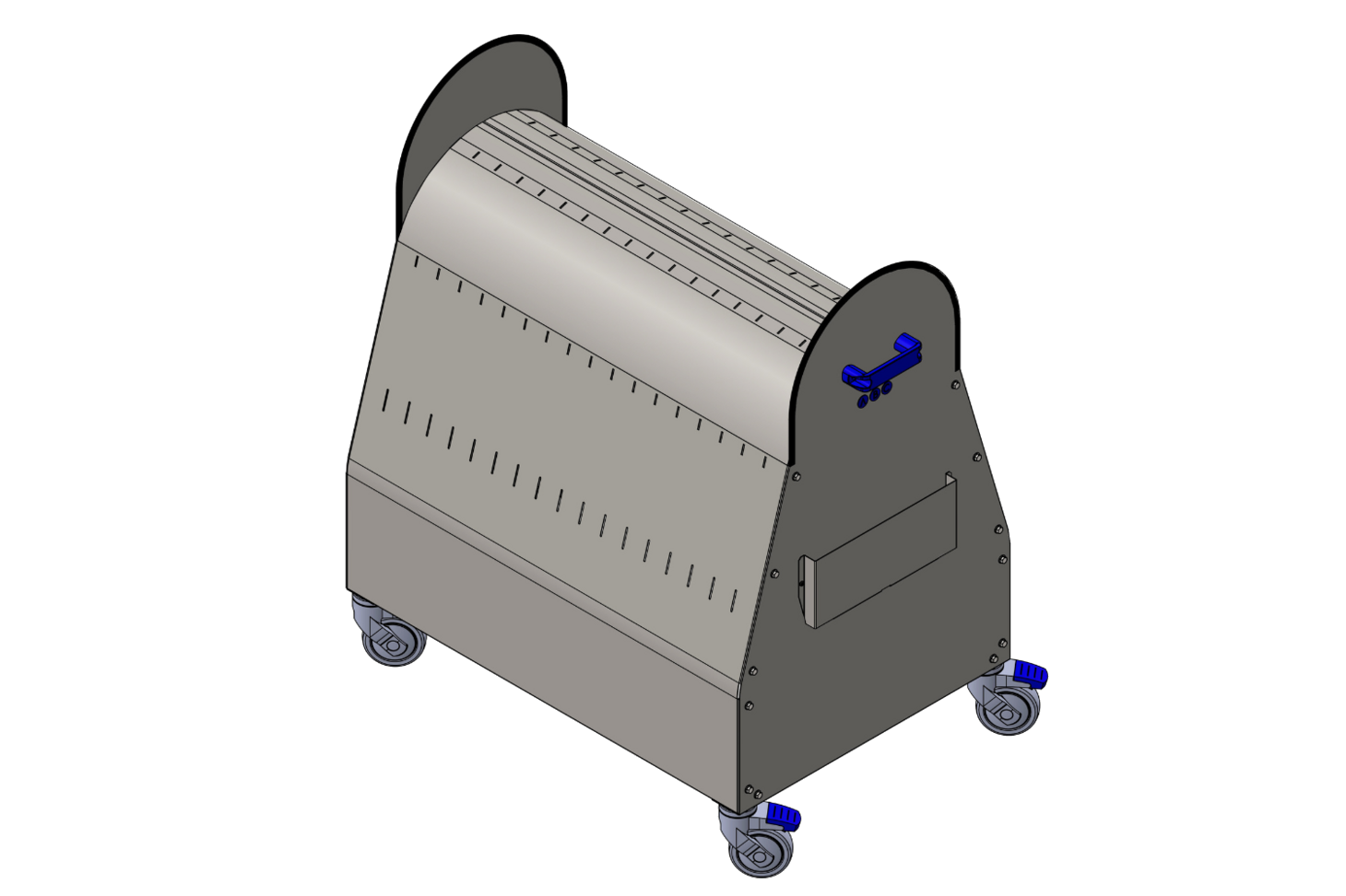 galvanised steel partitions, inserted in the upper part of the trolley to separate the different types of processing.