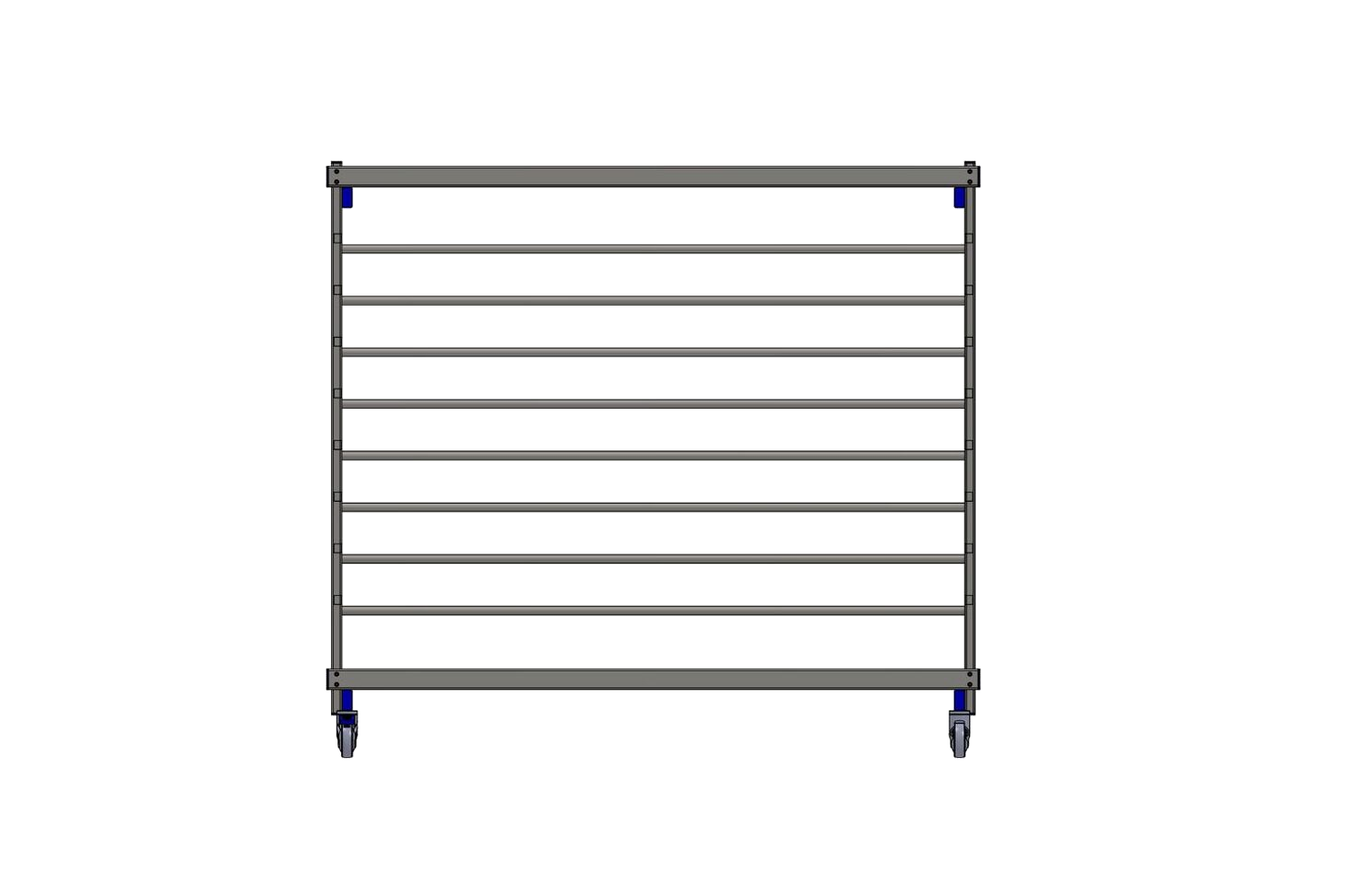 Our roll trolley is made of galvanised steel and equipped with anti-wire wheels with brakes for comfortable handling throughout the laboratory. The narrow design allows easy manoeuvrability in the halls in the department.