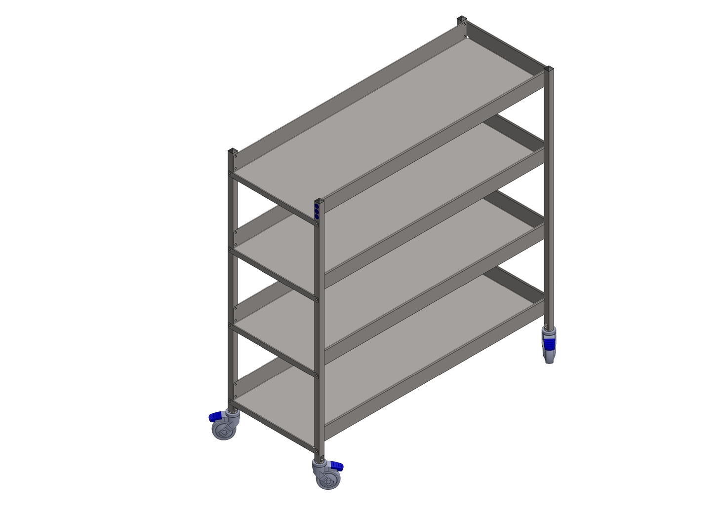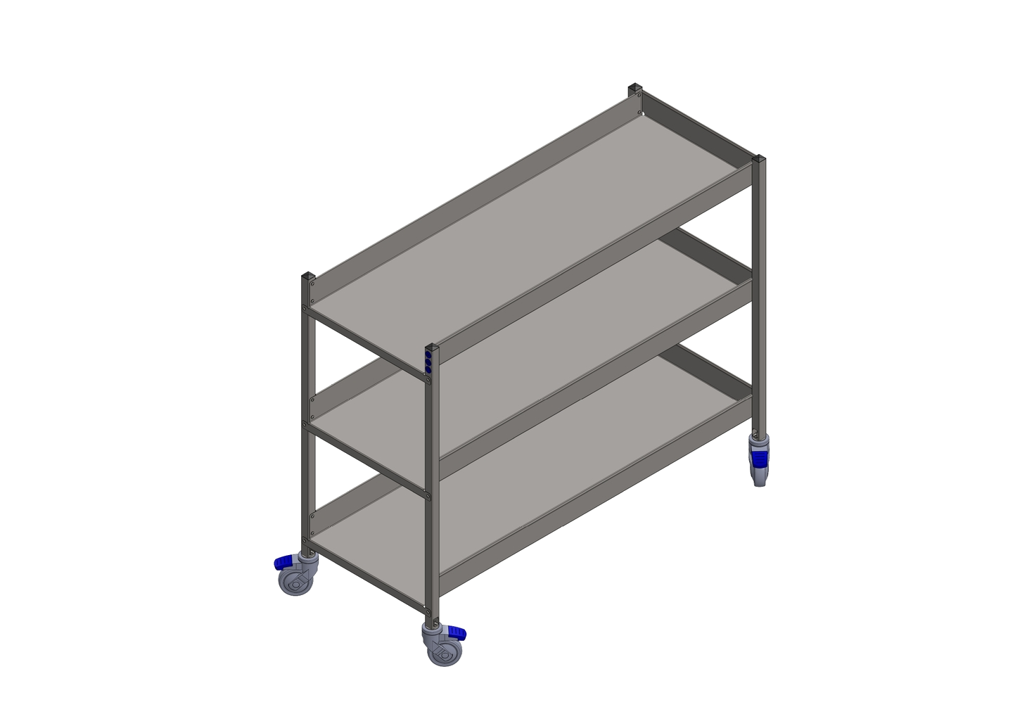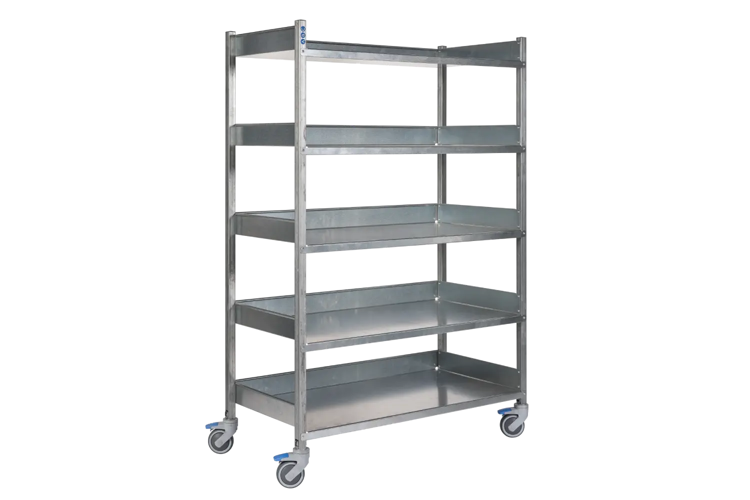 All of our shelves trolleys are made of galvanized steel and equipped with anti-wire wheels for comfortable handling. The stable design allows easy manoeuvrability in the halls in the department.