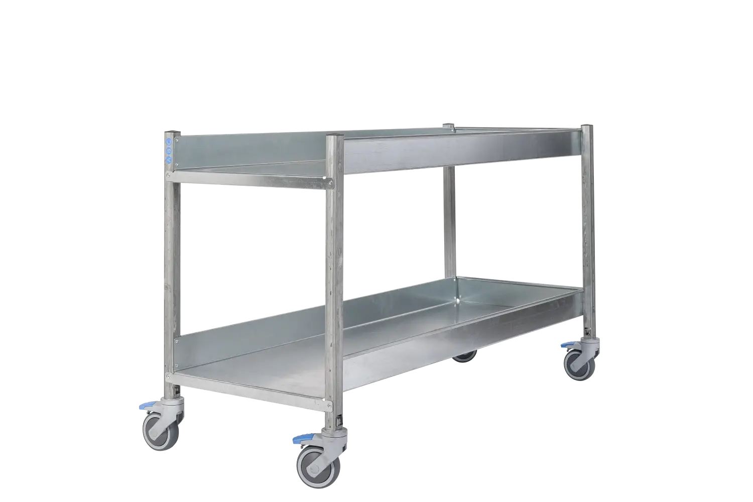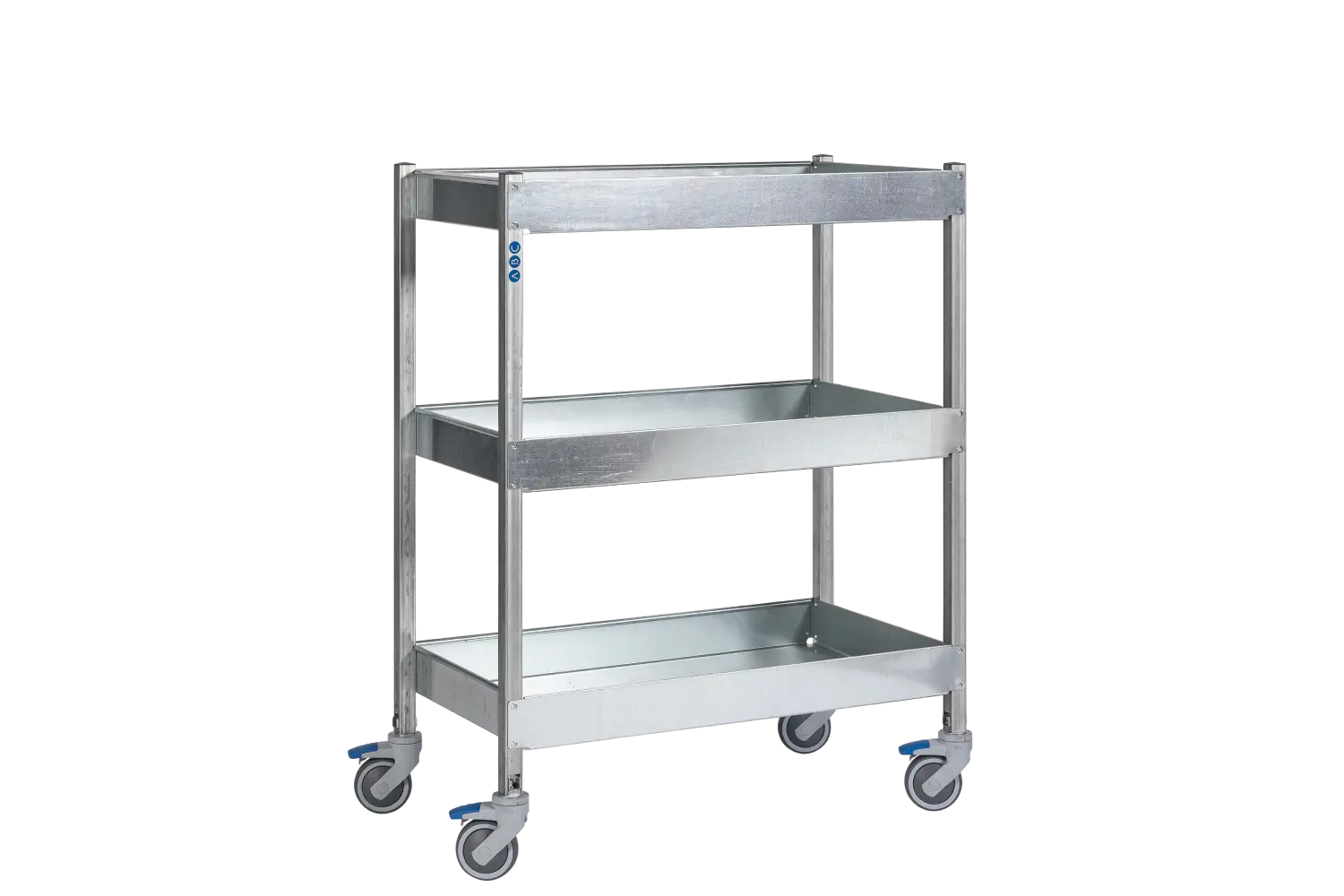 Tous nos chariots sont fabriqués en acier galvanisé et équipés de roues pare-fil pour une manipulation confortable. La structure stable permet une manœuvre aisée dans les couloirs du département.