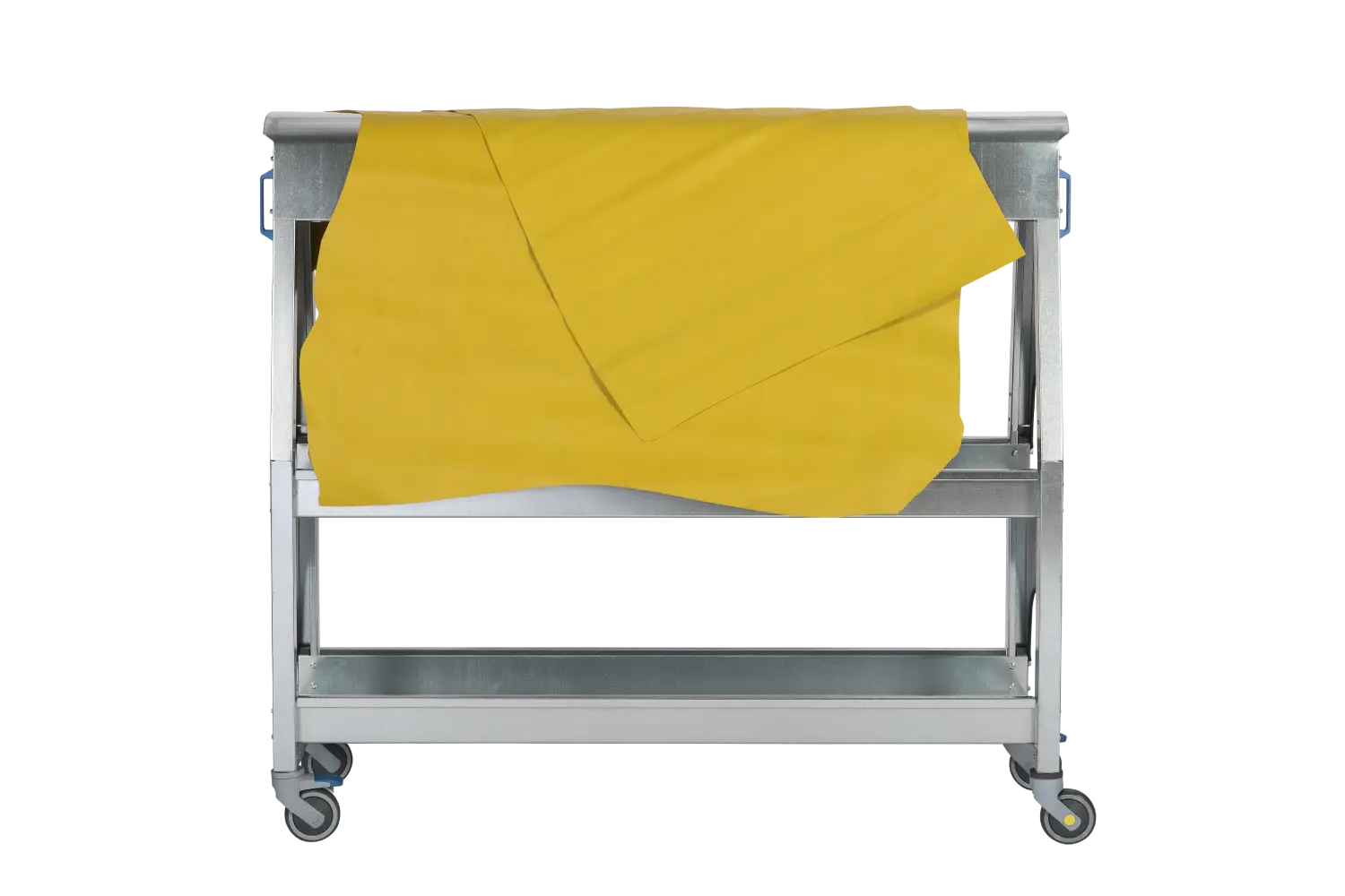 Le chevalet porte-peaux standard avec large bosse est choisi par les fabricants de chaussures et d’articles en cuir pour manipuler les peaux d’un département à l’autre. La large bosse est idéale pour tous les types de peau, même les plus délicats, car elle présente une plus grande surface d’appui.