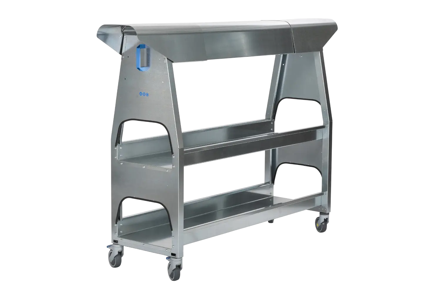 Il carrello porta pelle normale con gobba ampia è scelto dalle aziende calzaturiere e pellettiere per movimentare i pellami da un reparto all’altro. La gobba ampia è ideale per ogni tipo di pelle, anche il più delicato, avendo una superficie di appoggio più ampia.