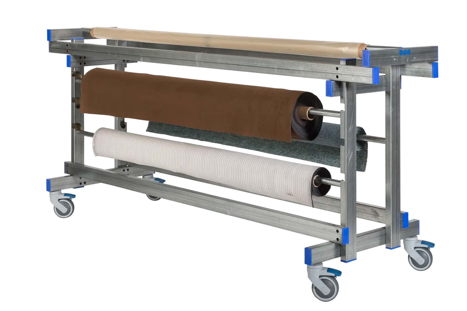 La nascita di questo articolo viene da una tranceria italiana che ci ha richiesto di modificare il carrello porta rotoli adattandolo al tavolo da taglio. Inizialmente il carrello è stato inserito nella categoria personalizzati e dopo aver riscosso successo tra i clienti è entrato a far parte della gamma prodotti ABC.